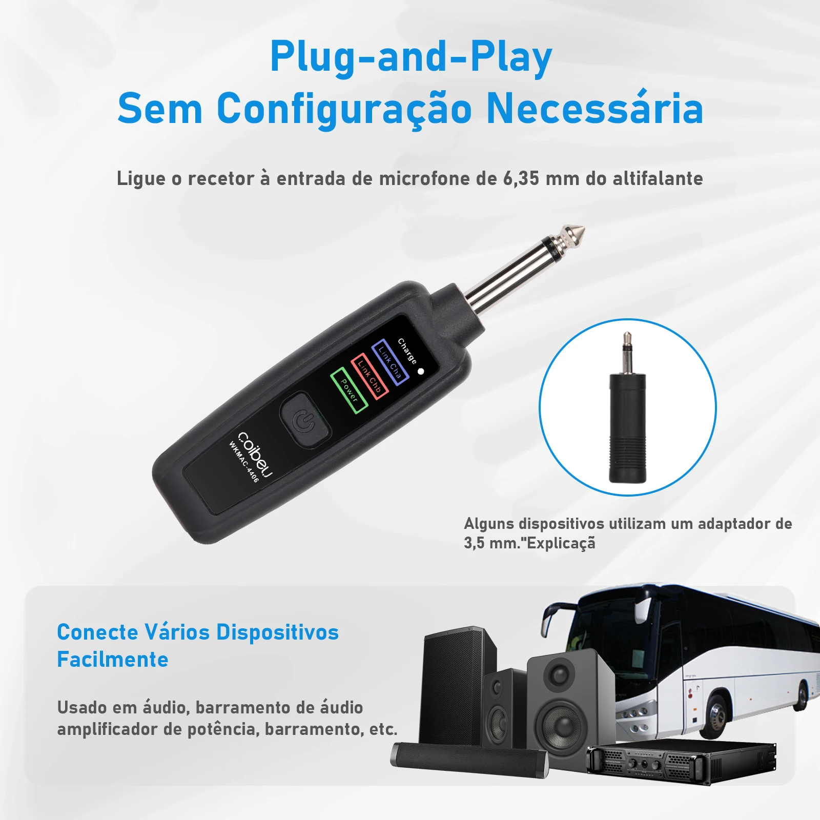 Liberte sua voz com o Kit de Microfones COIBEU. Projetado para quem busca qualidade sonora profissional aliada à total liberdade de movimento, este par correspondente é a solução definitiva para seus momentos de lazer, festas de karaokê, palestras ou apresentações religiosas.